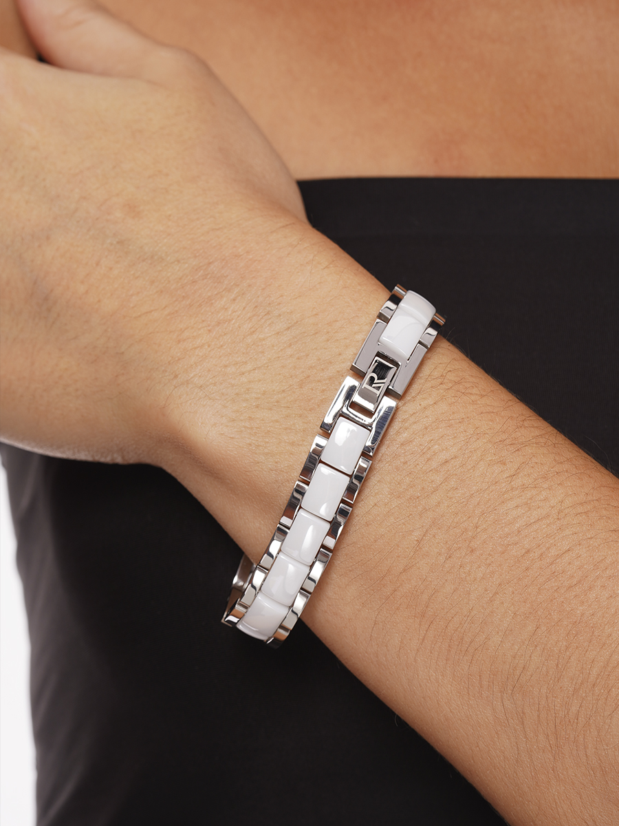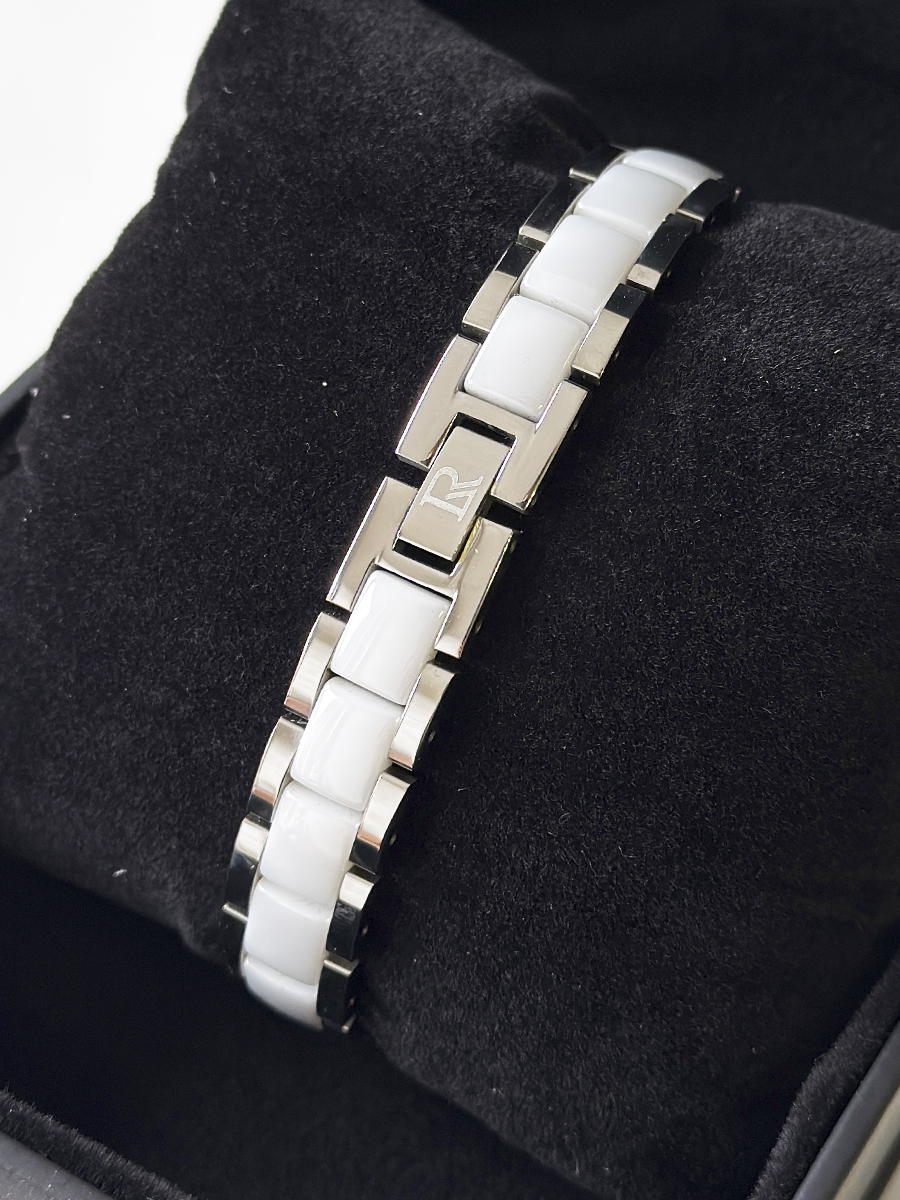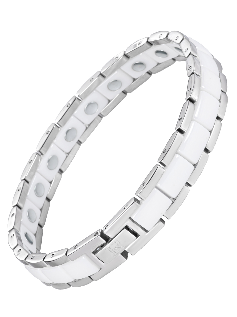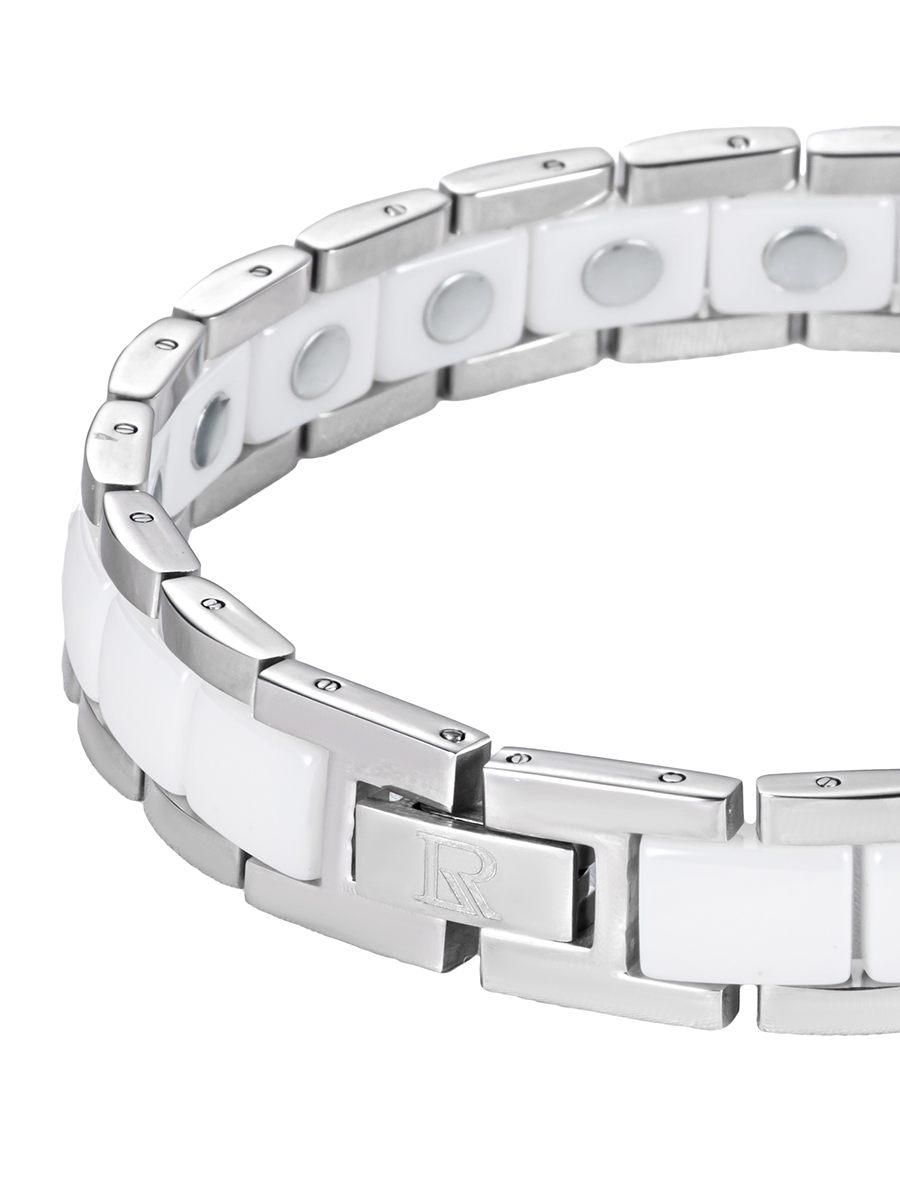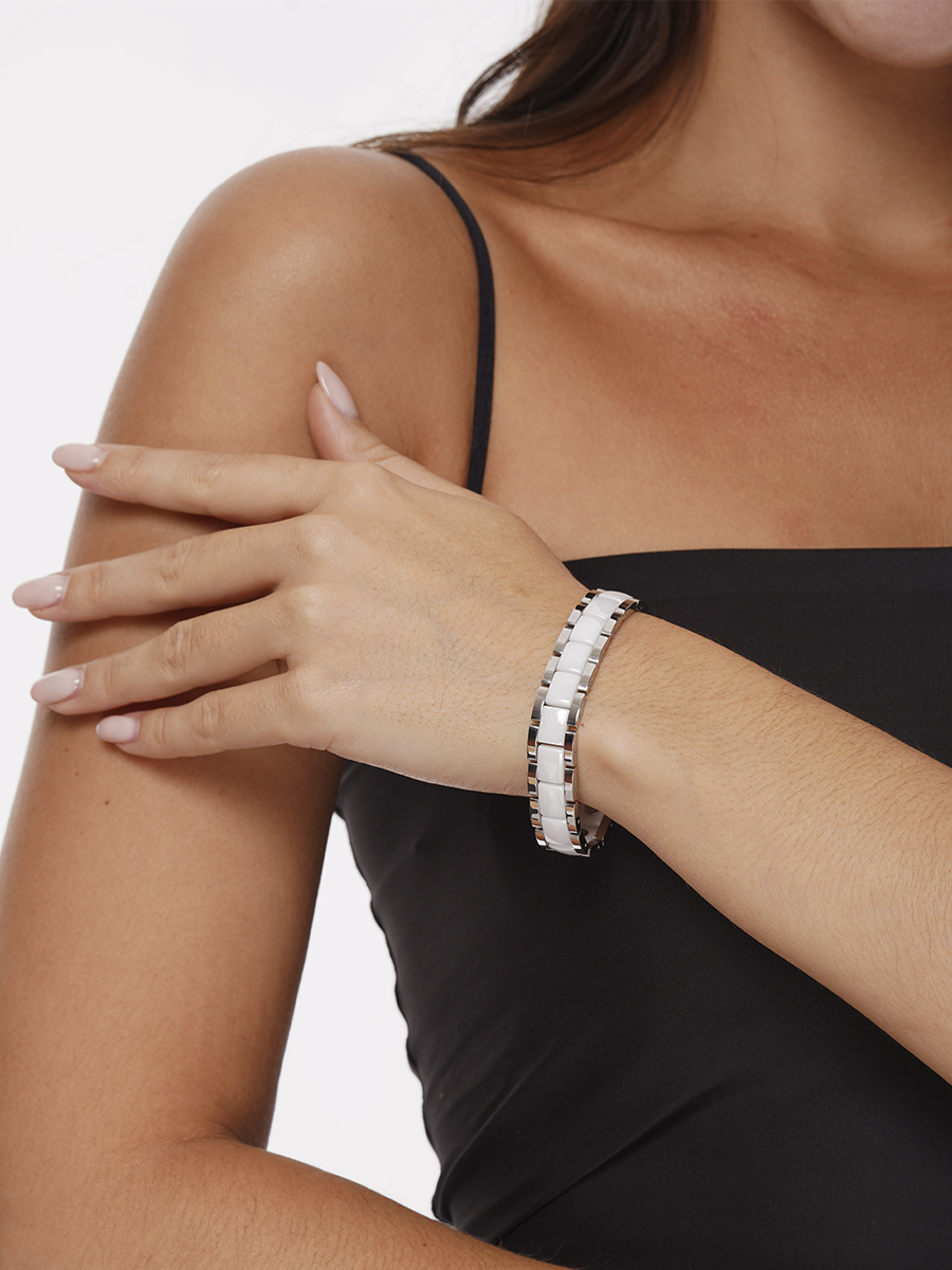 Стильный и практичный магнитный браслет Roca от Luxorium станет прекрасным дополнением к любому образу. Изготовленный из высококачественной ювелирной керамики и нержавеющей стали, он отличается изысканным дизайном и удобством носки. Благодаря регулируемой длине, браслет идеально сядет на запястье любой руки. На внутренней стороне расположено 21 вставка из неодимовых магнитов силой в 2400 Гаусс. Вставка из магнитов придает ему дополнительные полезные свойства, а логотип бренда Luxorium подчеркивает его эксклюзивность. Браслет Roca – это прекрасный подарок для любимых женщин, будь то мама, подруга или коллега, к любому празднику. Браслет с геометрическим дизайном подходит как для повседневной носки, так и для создания образа в деловой среде. Застёжка-защёлка гарантирует надёжность фиксации даже во время активных занятий.