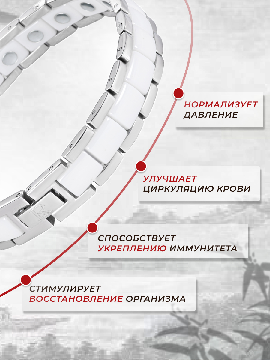 Рабочее давление, метеозависимость, отсутствие регулярных физических упражнений, электронное излучение – создают ионный дисбаланс. Балансирующий эффект компонентов вставок браслета создает положительные и отрицательные заряды, которые восстанавливают ионный баланс тела.